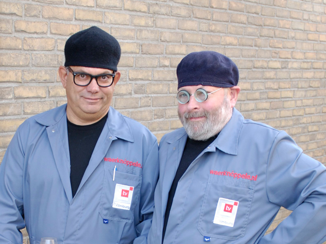 Jos Hanssen (1955) en Pierre Lemmens (1952) gekleed in een blauwe stofjas en met een zwarte alpinopet op het hoofd en een overdreven bril op de neus, zijn een bekende verschijning op de Limburgse tv.